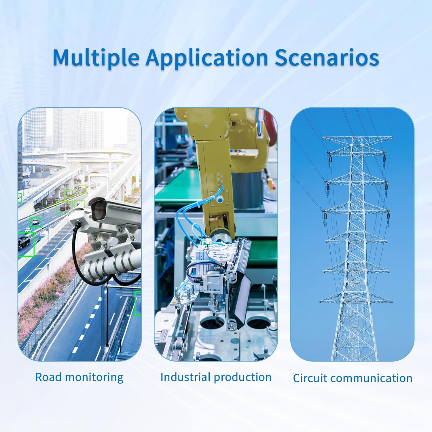 • 【Plug and Play】 It don't need any configuration, fanless design, quiet operation, suitable for intelligent transportation, rail transit, electric power, mining, metallurgy and green energy and other industrial scenarios which needs Ethernet access.