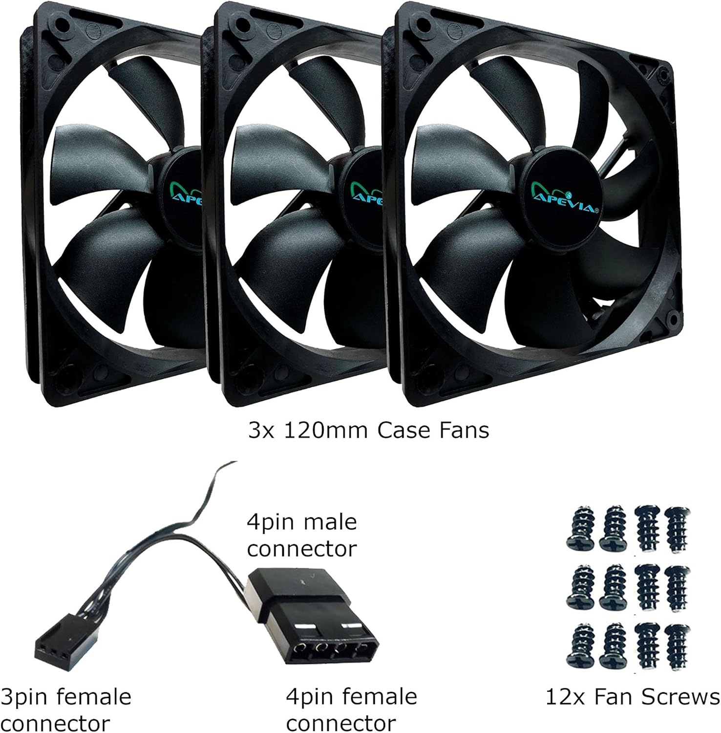 • Apevia 120mm 4pin Molex 3pin Motherboard Silent Black Case Fan