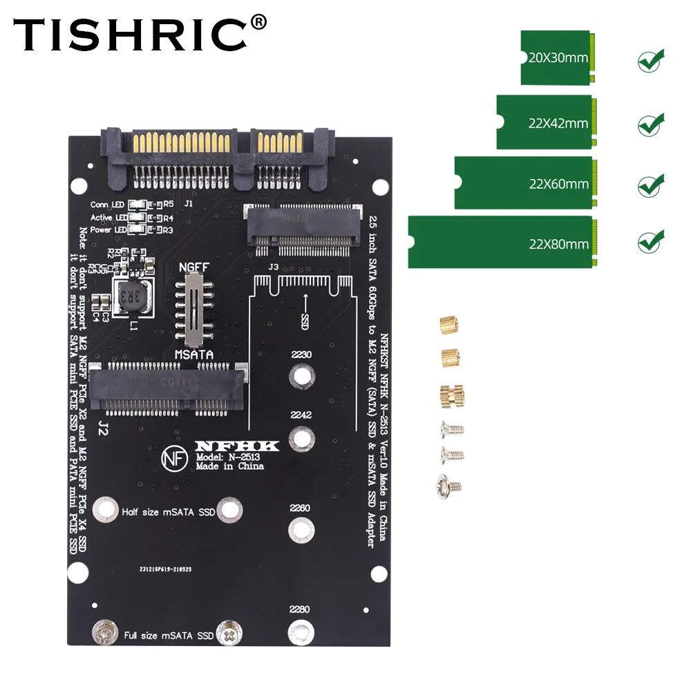 TISHRIC 2.5 inch SATA 60Gbps to M2 NGFF SATA SSD MSATA SSD Adapter MSATA to SATA M.2 NGFF to SATA Hard Disk Adapter Board