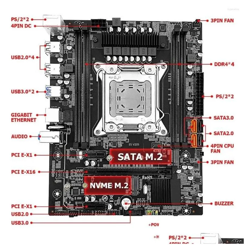 Motherboards Keyiyou Lga 2011-3 X99 V205 Kit Xeon 2650 V4 Cpu Processor Ddr4 64Gb 213Hz Ecc Reg Ram Support Sata 3.0 Nvme M.2 Pcie Dro Ot4Yz