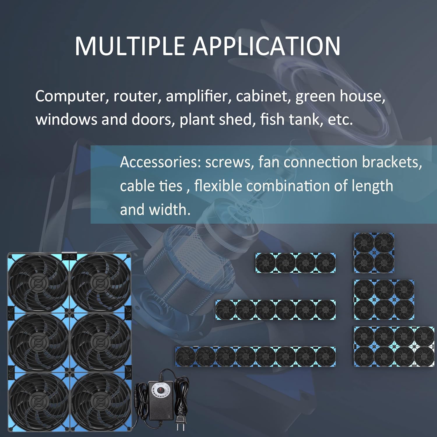 • FLEXIBLE ARRANGEMENT: Each set fans with screws,fan connection brackets,metal guards,cable ties,you can easily assemble it for flexible length and width.