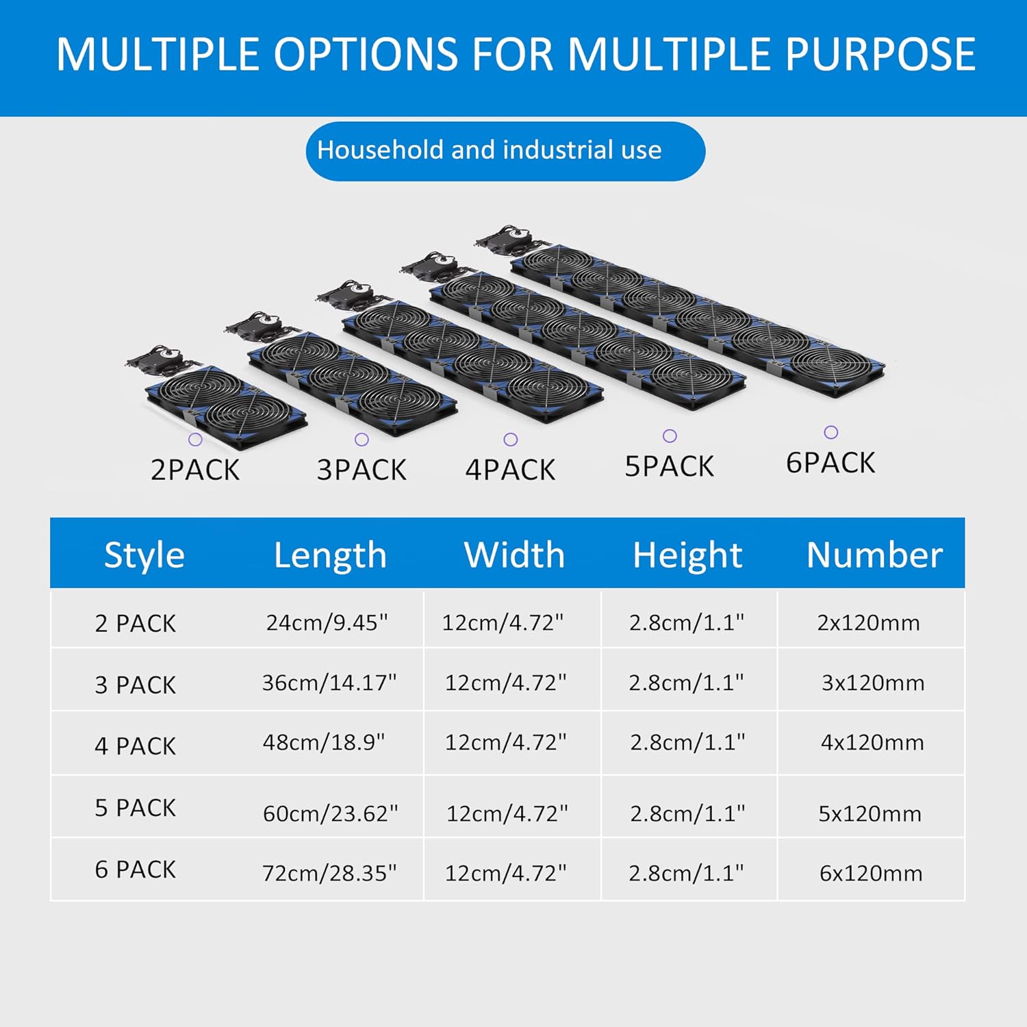 • FLEXIBLE ARRANGEMENT: Each set fans with screws,fan connection brackets,metal guards,cable ties,you can easily assemble it for flexible length and width.