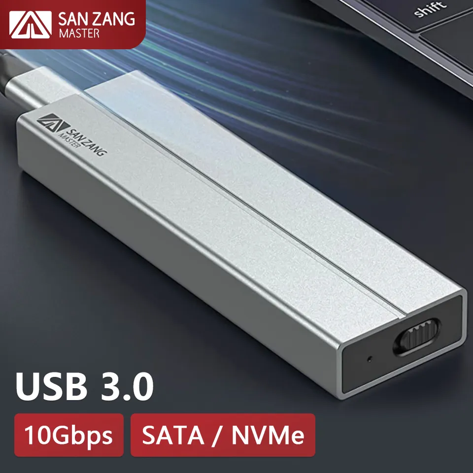 SANZANG M.2 NVMe SSD Enclosure NGFF SATA External Case M2 USB 3.2 Type C Hard Disk House B&M Key HD Storage Box for PC Laptop