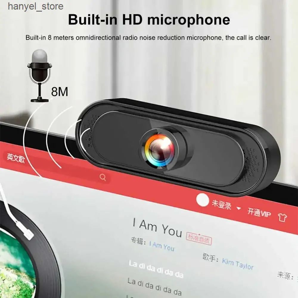 Webcams New computer and Office network camera 1080P microphone for PC laptop digital camera 720P video recording and laptop peripherals L240910