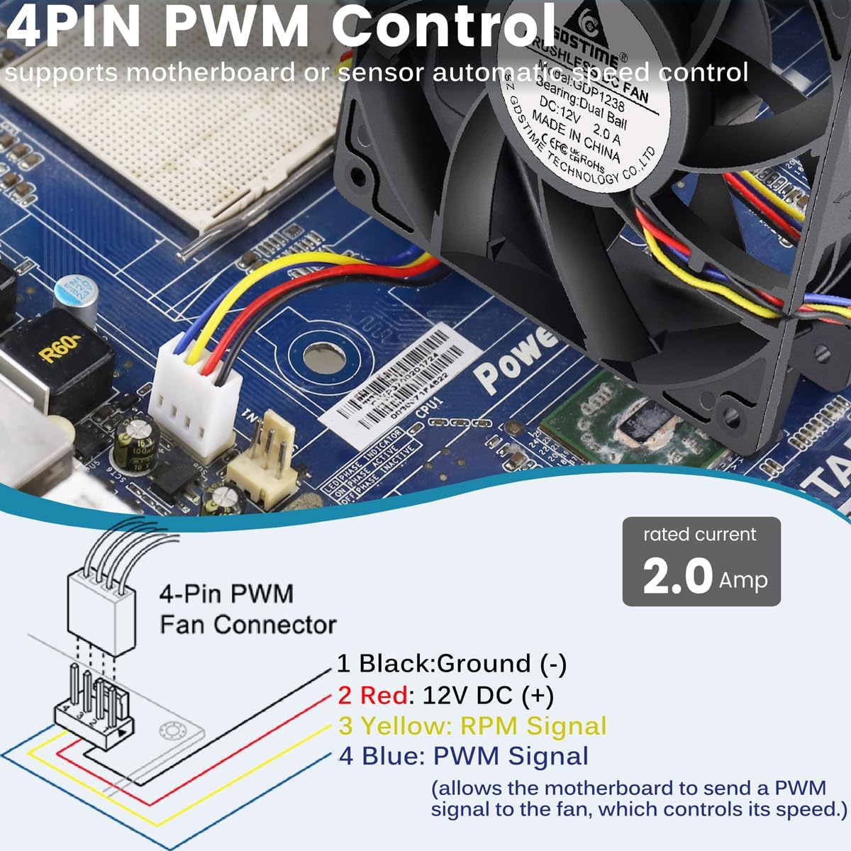 GDSTIME High Static Pressure 80mm x 80mm x 38mm PWM 4-Pin Dual Ball Bearing 12V DC Cooling FanGDSTIME High Static Pressure 80mm x 80mm x 38mm PWM 4-Pin Dual Ball Bearing 12V DC Cooling Fan