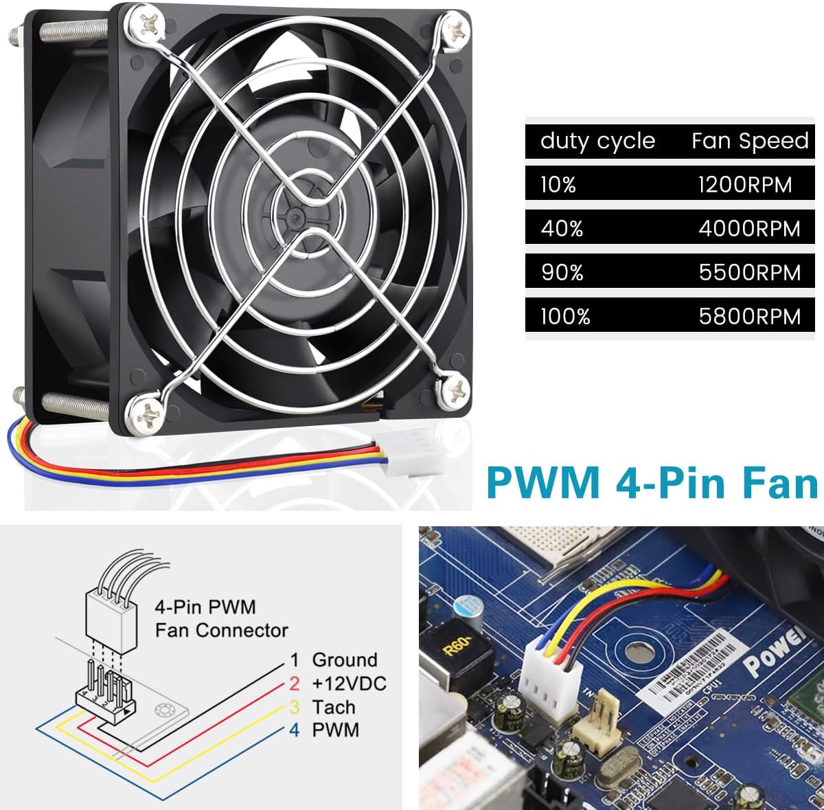 GDSTIME 80mm PWM 4Pin Fan High Static Pressure DC 12V Brushless Cooling FanGDSTIME 80mm PWM 4Pin Fan High Static Pressure DC 12V Brushless Cooling Fan