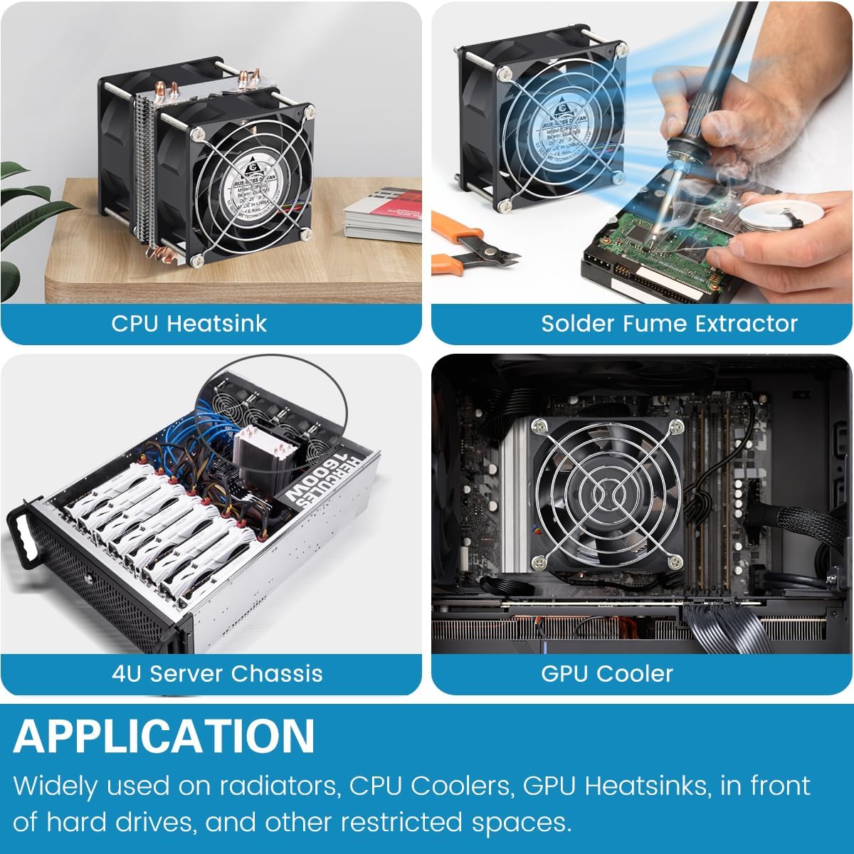 • 【RAPID COOLING】80mm high static pressure fan is suitable for 4U server chassis, inverter, GPU heatsink, solder fume extractor, radiators, etc; or as a replacemment fan for many products