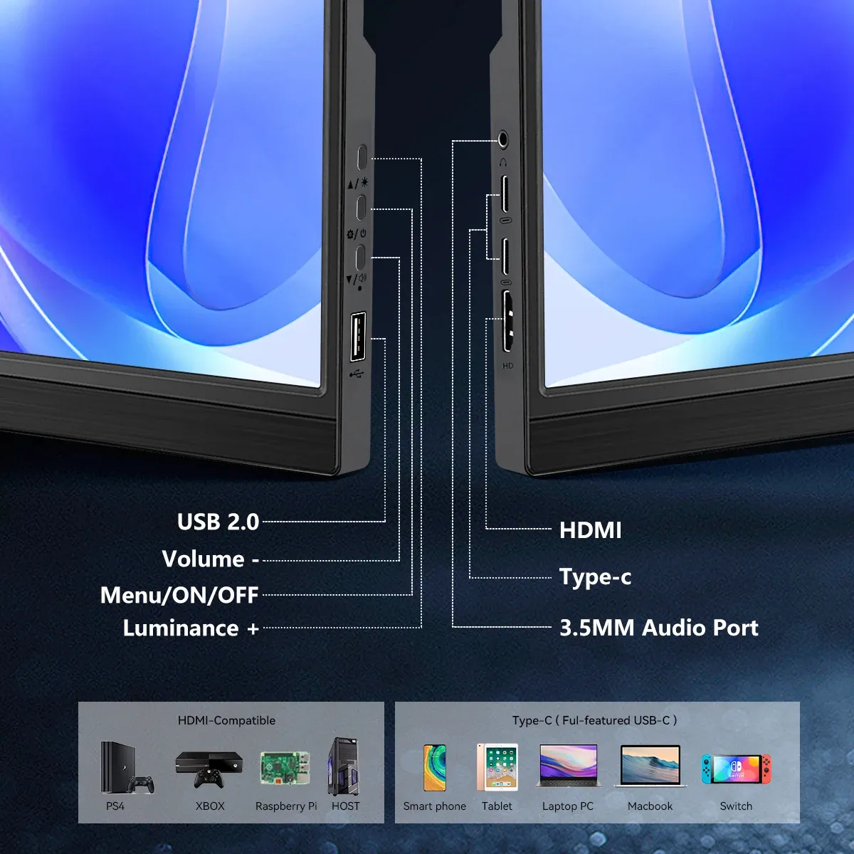 14 Inch Portable Monitor 1920*1080 60Hz IPS lcd touch Screen Gaming monitor for PC Phone Mac Xbox PS 4 5 Switch