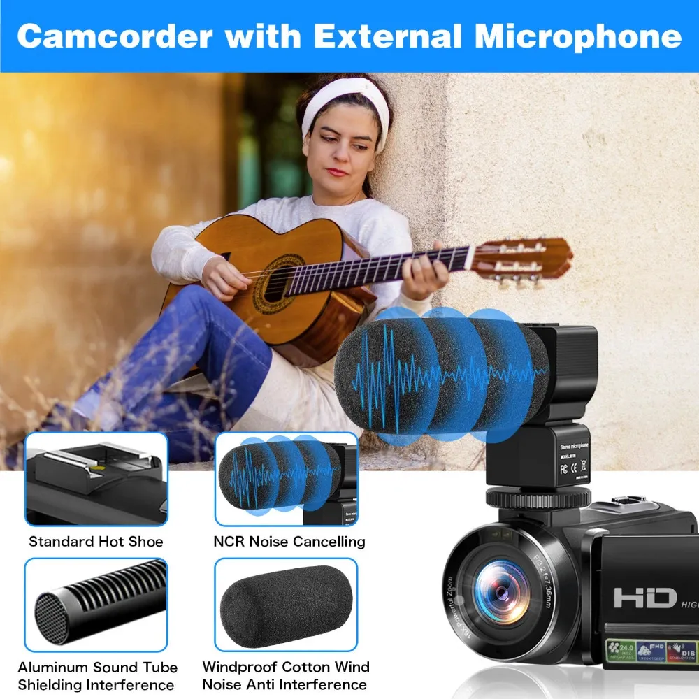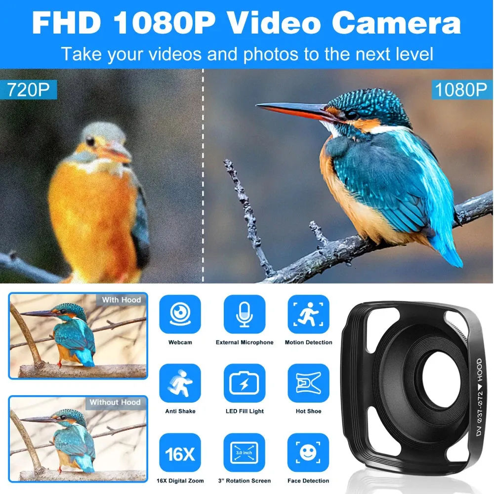 Video Camera Camcorder Digital Recorder Full HD 1080P 24MP 30 Inch LCD Screen 270° Degree Rotation Kit 240710