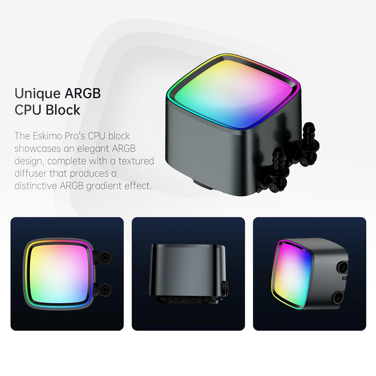 Eskimo Pro - 420mm AIO CPU Liquid Water Cooler- RGB PWM Squama 2503B 140mm Fan x 3- Fit Intel® LGA 1700, AMD®AM5 - Black- (GEO-EP-42B)