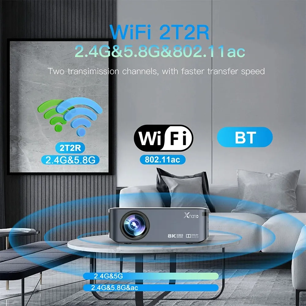 XNANO X1 Projector Android 9 OS Amlogic T972 Quad Core 8K 1080P 2.4g/5ghz Dual Wifi 2T2R BT Led 2GB RAM 16GB ROM