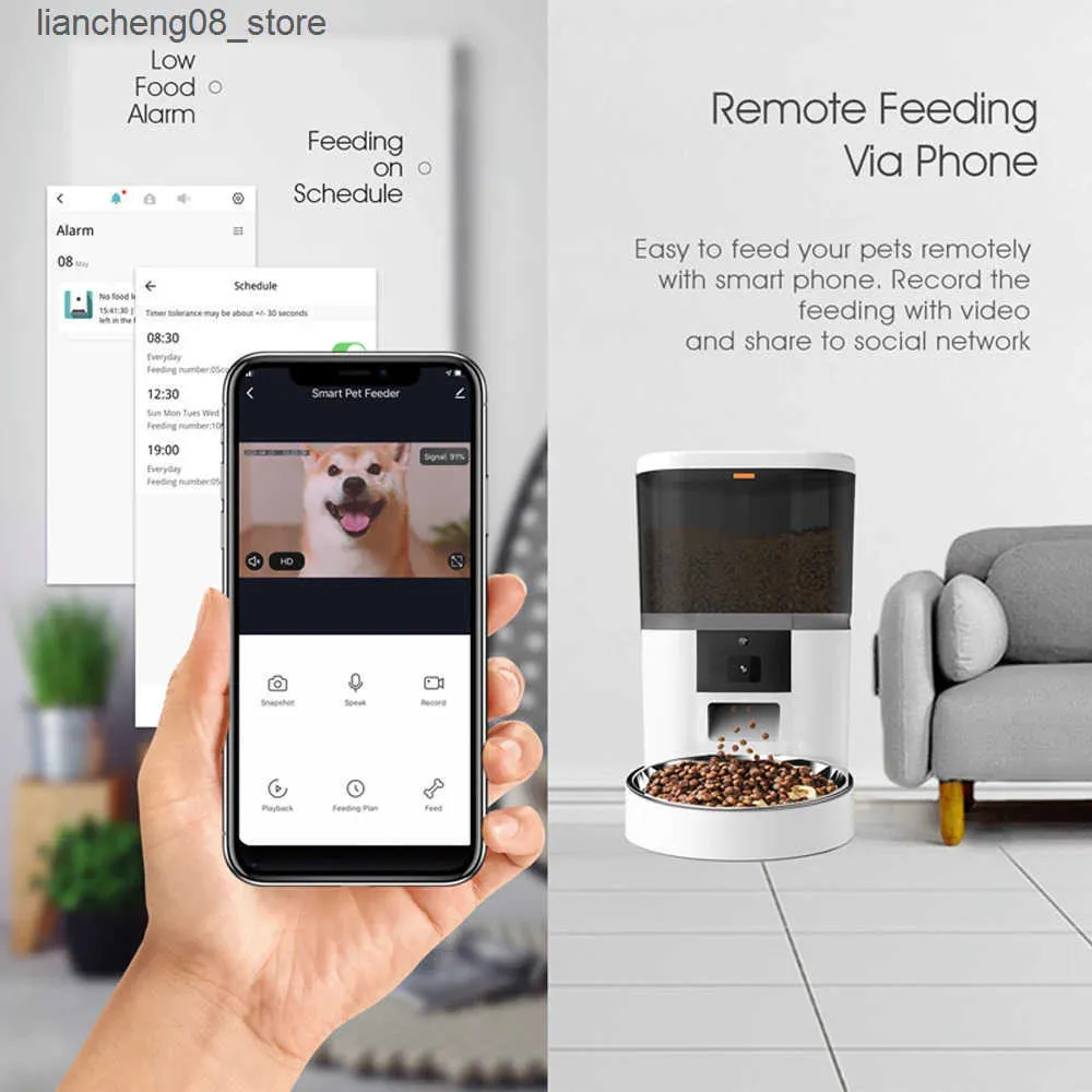 Dog Automatic Feeders 4L 5V USB automatic application intelligent pet dog dry food timer with camera video used for remote of cat and bowls L240910