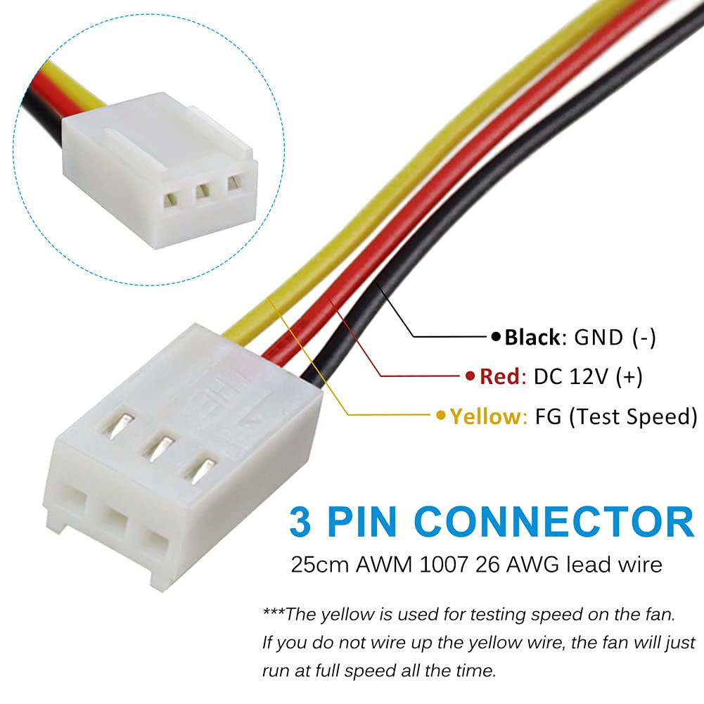 • Connector: 3Pin; Lead wire: UL Type (positive): Red Wire ; (negative): Black Wire. FG function:Yellow Wire. This is a two wire cooling fan.