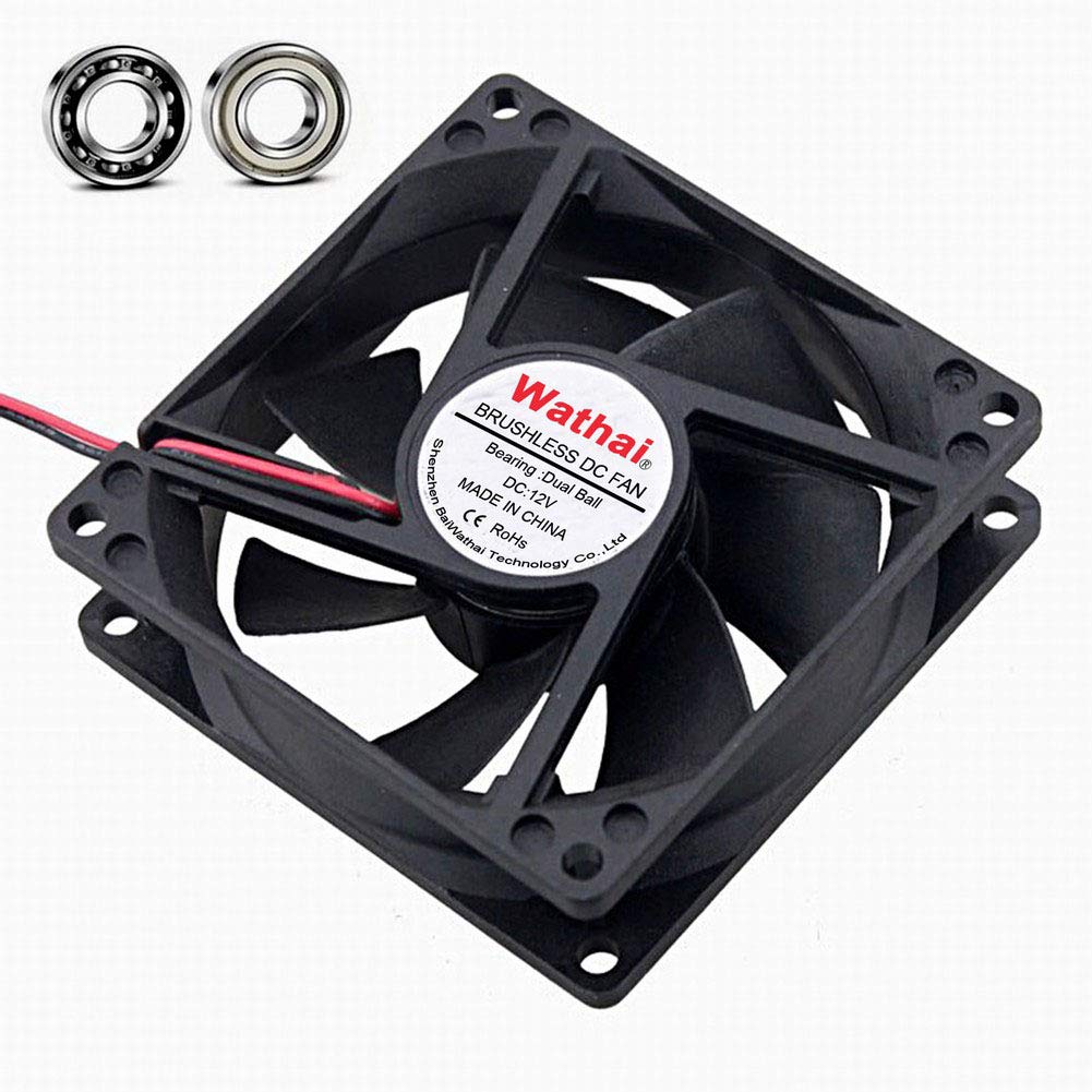 Wathai 80mm x 25mm 12 Volt Fans DC Brushless Cooling Fan 12V Dual Ball 2Pin for DIY Small Project Cooler 2 Pack